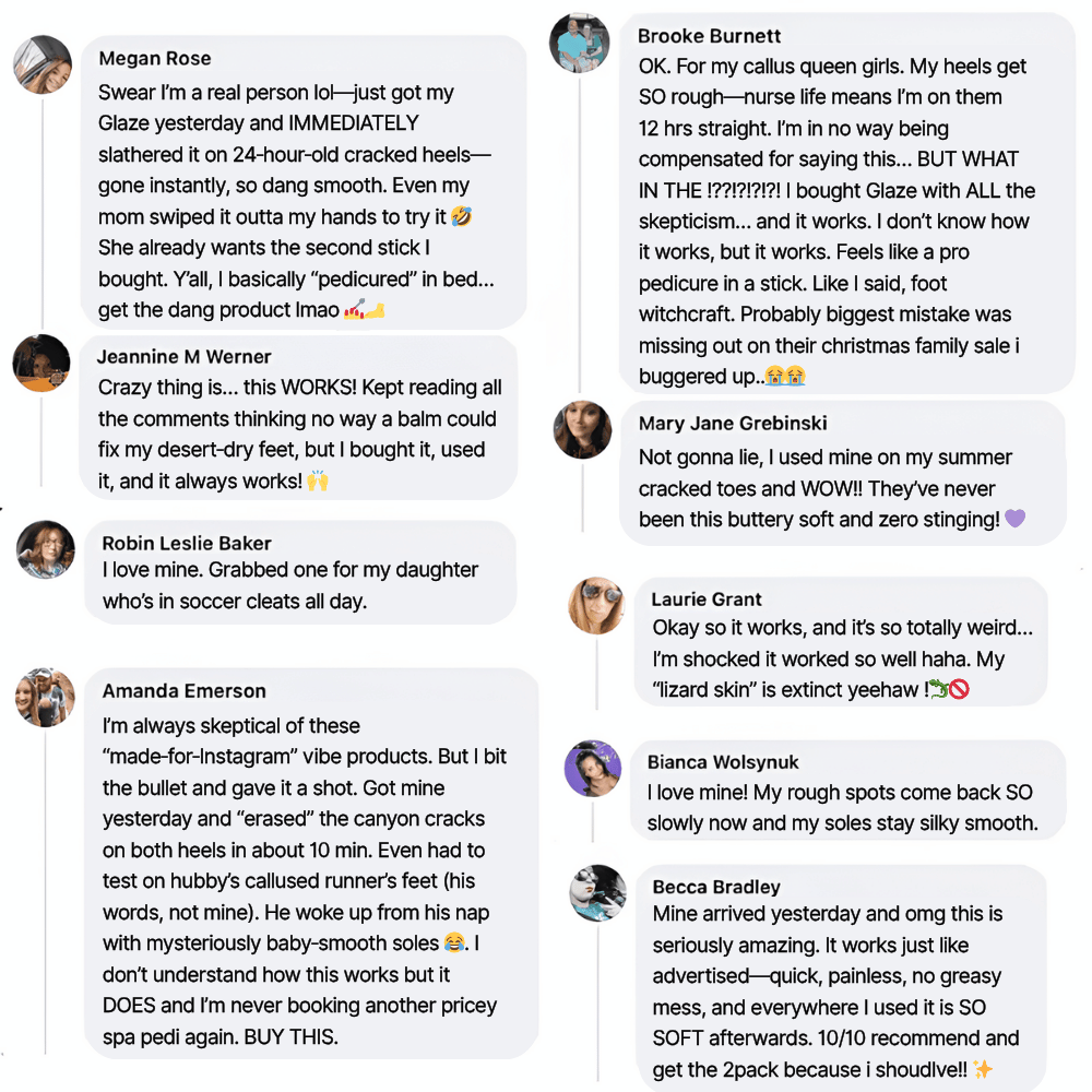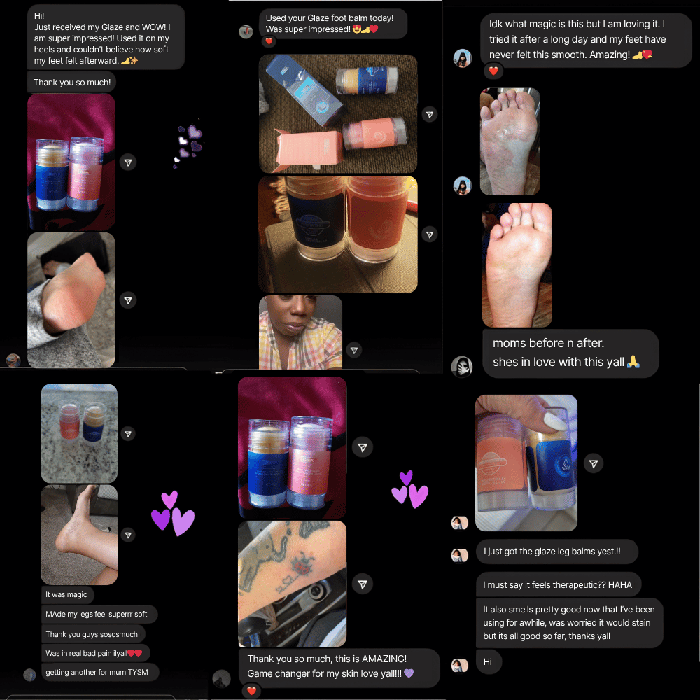 *Based on 119 customers' self-reported results after 3 weeks of Glaze Essential Foot Balms